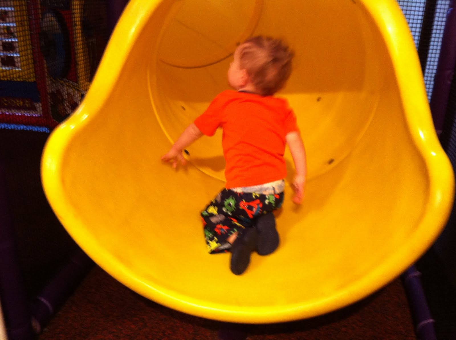 We love the playground at Chik-fil-a, nothing better than a pack of nuggets, fruit, juice, and then playing on the slide.  Throw in a trip to Marbles Kids Museum and life is good in his mind.