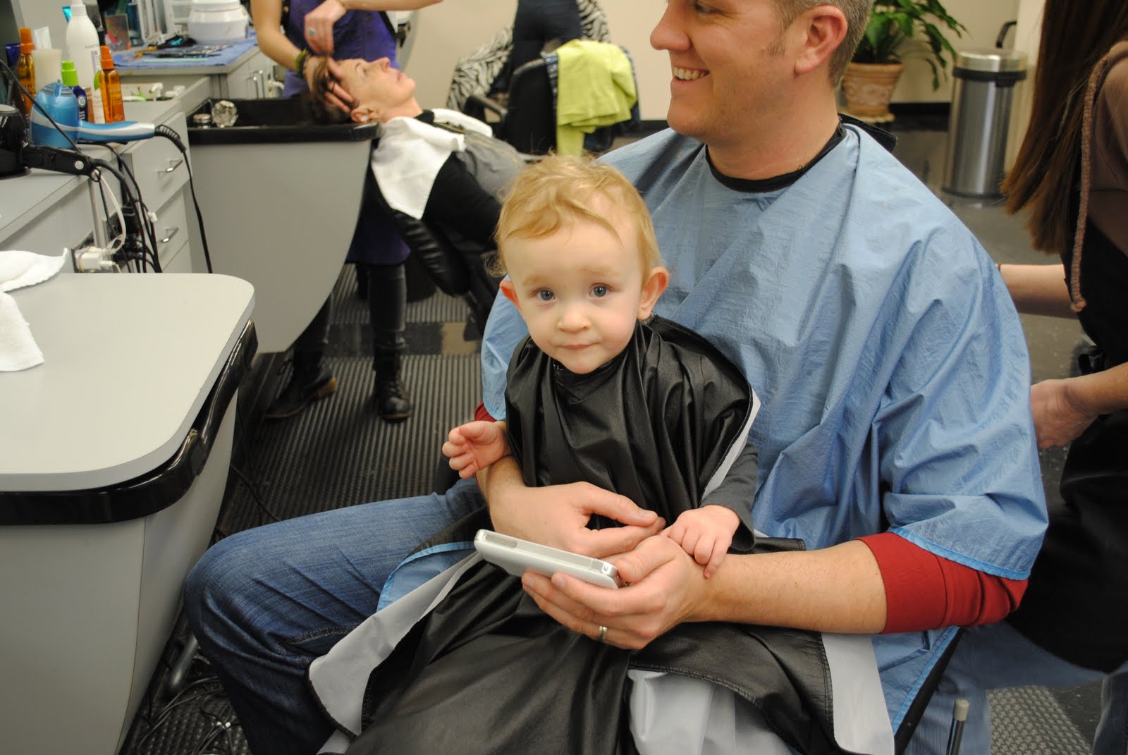 Although he now needs another, he got his first haircut a few months ago.  Thanks Amy!  He was a bit unsure, but he did just fine and looked suave.