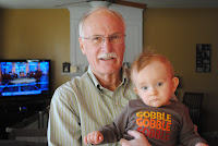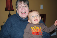Today was Cade's first Thanksgiving!  I am stunned that in less than 2 months he will be a year old.  He gets more and more like a little boy and less and less like a baby every day.  I have loved spending time with him the past week or so, I had a tough run of about 7 weeks in a row gone traveling for work so it is great to just be home with my family.  We fried a turkey, and had tons of good food.  Cade was a mess with sweet potatoes and mashed potatoes.  But what took the cake was whipped cream.  He would have sucked down and entire can if we let him.