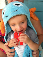 Someone call Nelly, because Cade has a grille...sadly only some of you will get the reference.  Cade has 4 top and 3 bottom teeth now, with the 4th working it's way in fast.  I also think the 1 year molars are showing up a month early.  Brushing his teeth has now become an OSHA issue.