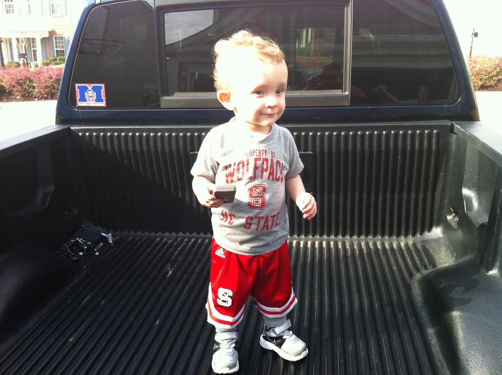 Cade is also talking more and more, and trying to help us do things.  I think we can use that to our advantage with deuce!  He likes to put his diaper in the diaper genie upstairs, then wash his hands.  He loves to help sweep/vacuum and wants me to carry him the whole time I cut the grass.  That one is a bit tougher, but I do it none the less.  He is also a superstar at cornhole...granted he just walks right up and throws it in but who is going to tell him he can't?  He is a ringer!