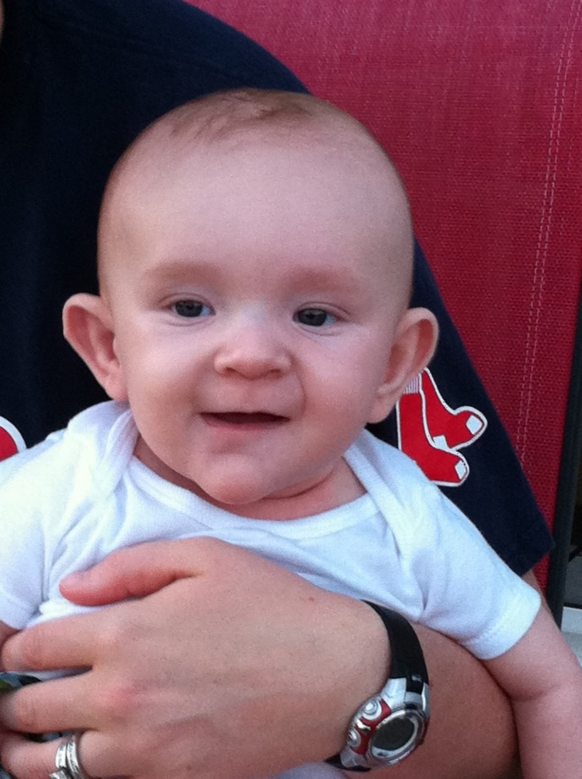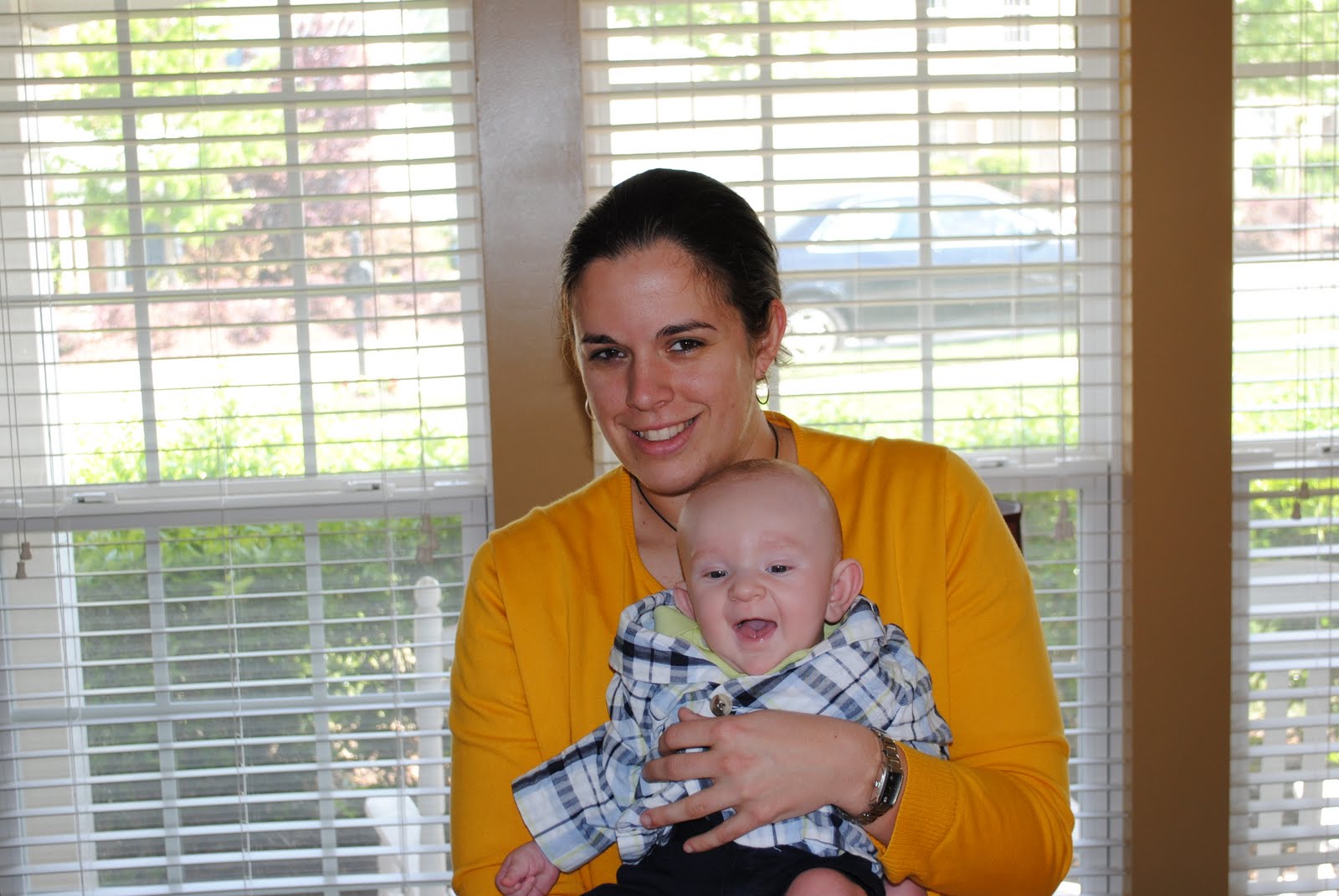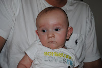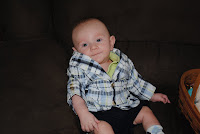 He is holding his head up great, and will be sitting before long. He wants to roll over so badly, it is pretty funny. He tries and tries, and gets frustrated when he can't do it. When you help him though, he smiles and laughs like he is so proud of himself.