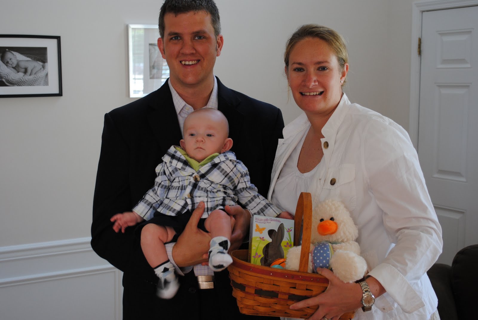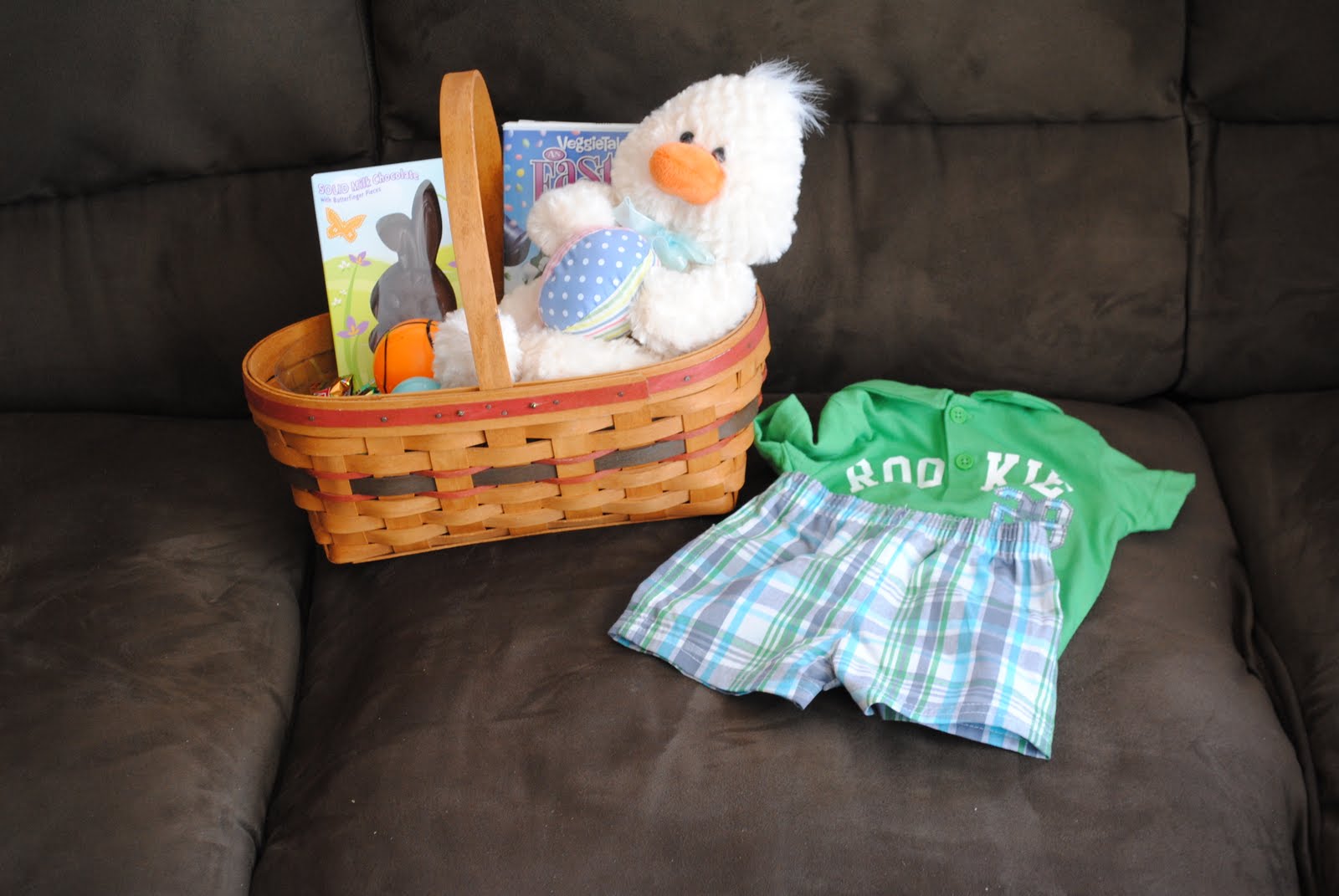 We had a great Easter. We saw the Easter Bunny, got Cade his first Easter basket and Cade rocked his new outfit, and had a great day with his buddy Carson at Grandma and Grandpa's house. He saw Aunt Ali, Great Aunt Cate, his Great Grandma and Uncle Brent and Aunt Kendra too. We had some good food and enjoyed spending time together.